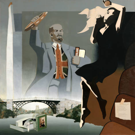 A list of the images to be used in this painting was compiled during the winter of 1978/9. The images were collected together during the summer of '79 and the initial drawings, and the composition for the painting were done at that time. The basic drawing was transferred to the canvas in '83 and painting was begun that october, with changes of emphasis though not of composition made in august of '85. After a gap of eight years work was begun again in november of '93 with a series of minor alterations to the imagery - principally to the female figure.