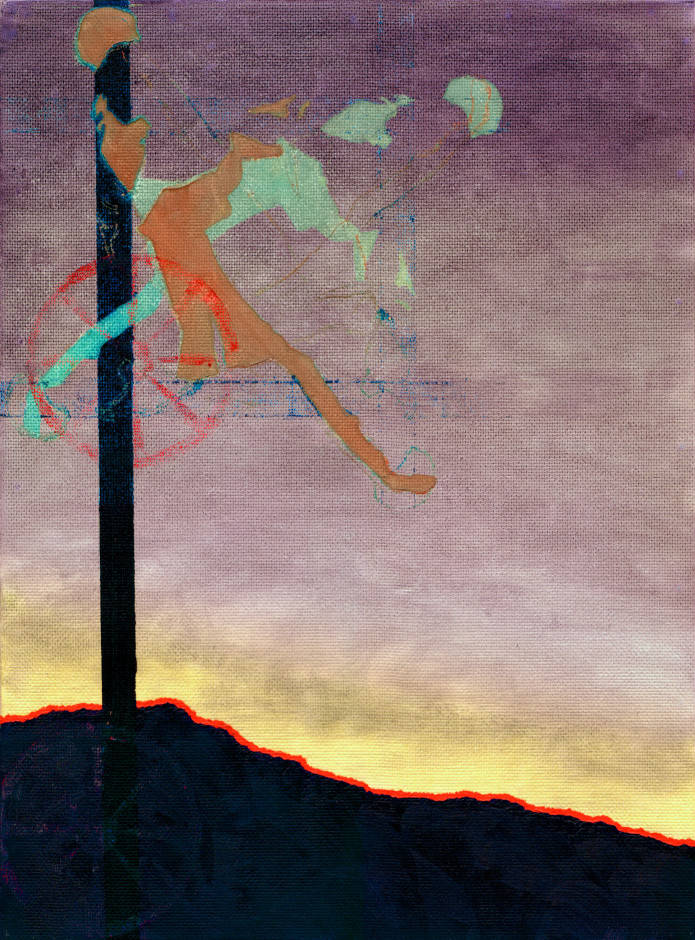 225 From the landscape of wargames to the landscape of silkscreen prints - the landscape of forever foolish Feb 98 Oils on board 38cm (15") x 51cm (20")