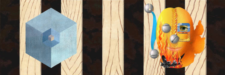 Oils, car spray paint on cotton on board // scanned, completed by computer generation // digital reworking April 2022