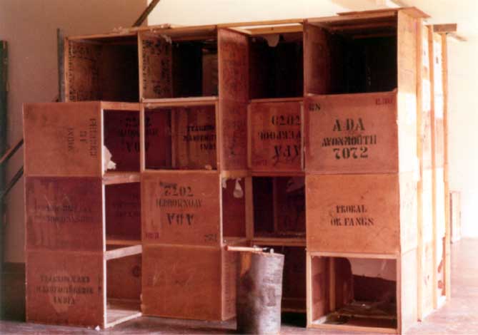 Maze J Files 1, 2 & 3 plus part of file 4. 'Grand Central Station' is directly behind the tree stump. The emergency exit is visible at the top of 'Grand Central Station'. 1975 Tea chests and timber.