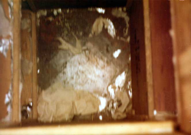 Maze P Looking down into 'Grand Central Station' from the emergency exit. 1975 Tea chests and timber.