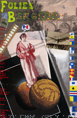 Collage, gouache, enamels, pencil, drawing ink, marker and crayon on card