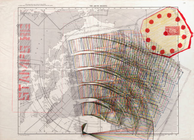 NPS-11 (Stamps 86, untitled) 1991 Stamp, crayon, pencil, marker on paper (map) 58cm (23") x 42cm (16")