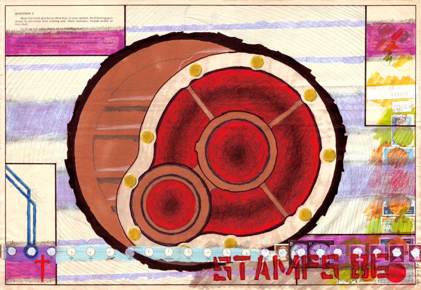 Collage, acrylic, marker, pencil, drawing ink, crayon on paper