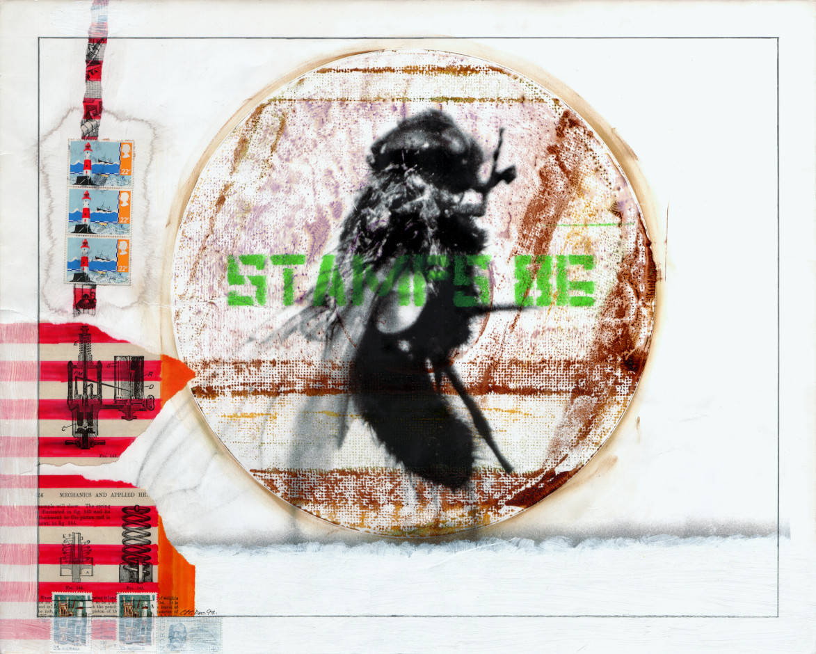 NPS-15 (Stamps 86, untitled) Dec 98 Collage, oils, acrylic, marker, pencil, car spray paint on photographic paper 51cm (20") x 40cm (16")