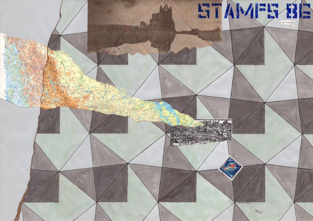 NPS-4 (Stamps 86, untitled) 1986 Collage, drawing ink, gouache, marker on card 64cm (25") x 45cm (18")