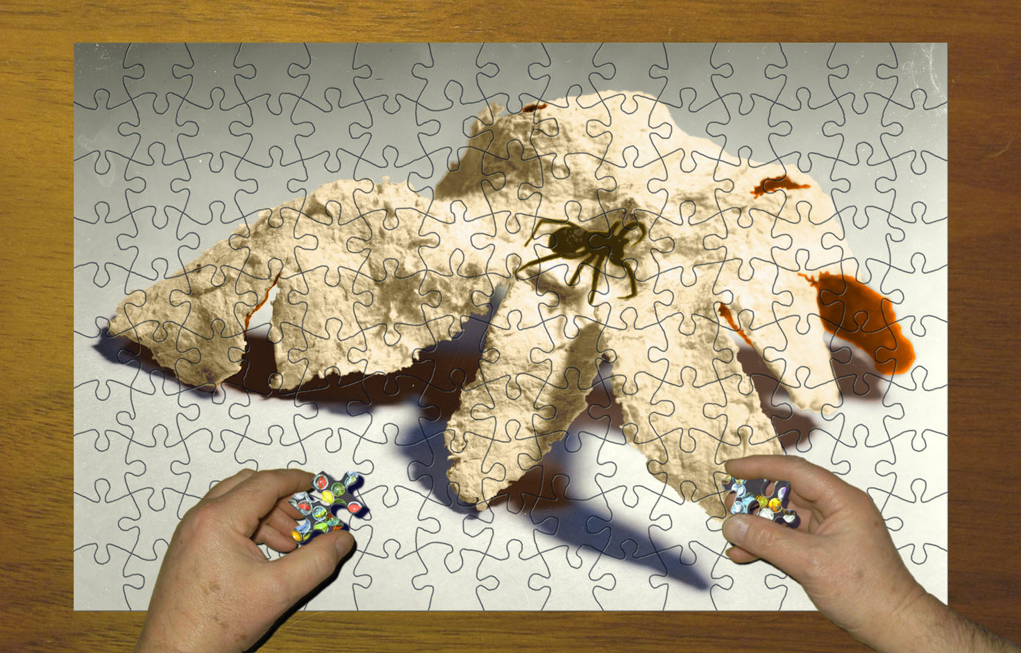 378 Now, there's a puzzle! ("Come into my parlour." said the satsuma to the marble) Dec 2011, Jan 2012 Photographs / digital collage / computer generated 74.5cm (29.5") x 47.5cm (19")