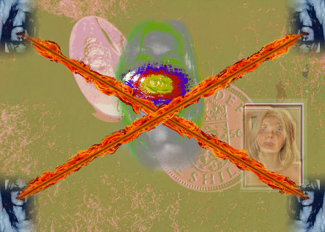 383 Discombobulation (Diverted and disconcerted by) The prettiest smiles of fire breathing dragons May 2008, Aug 2012 Digital collage / computer generated 47.5cm (19") x 34cm (13.5")