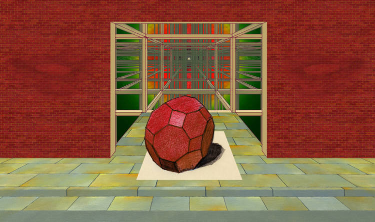 389V2 Carillon in the vestibule Jan 2014 Pencil, coloured pencil, digital collage / computer generated 100cm (39.5") x 59.5cm (23.5")