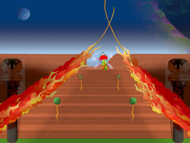 (Or 'Up in flames')