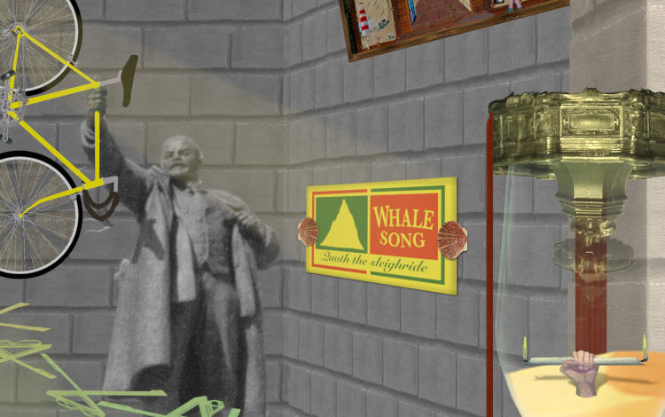 P454iv The Albatross Equation - The box room in the tower (Quoth the sleighride 'Evermore') Detail Mar 2024 Digital collage / computer generated 51cm (20") x 63.5cm (25")