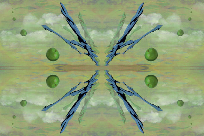 P455E2a Leaping, spinning - Elaboration E2a Mar 2024 Digital collage / computer generated 254cm (100") x 169.5cm (66.5")