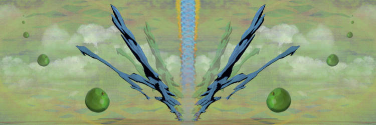 P455E5 Leaping, spinning - Elaboration E5 Mar 2024 Digital collage / computer generated 254cm (100") x 84.5cm (33.5")