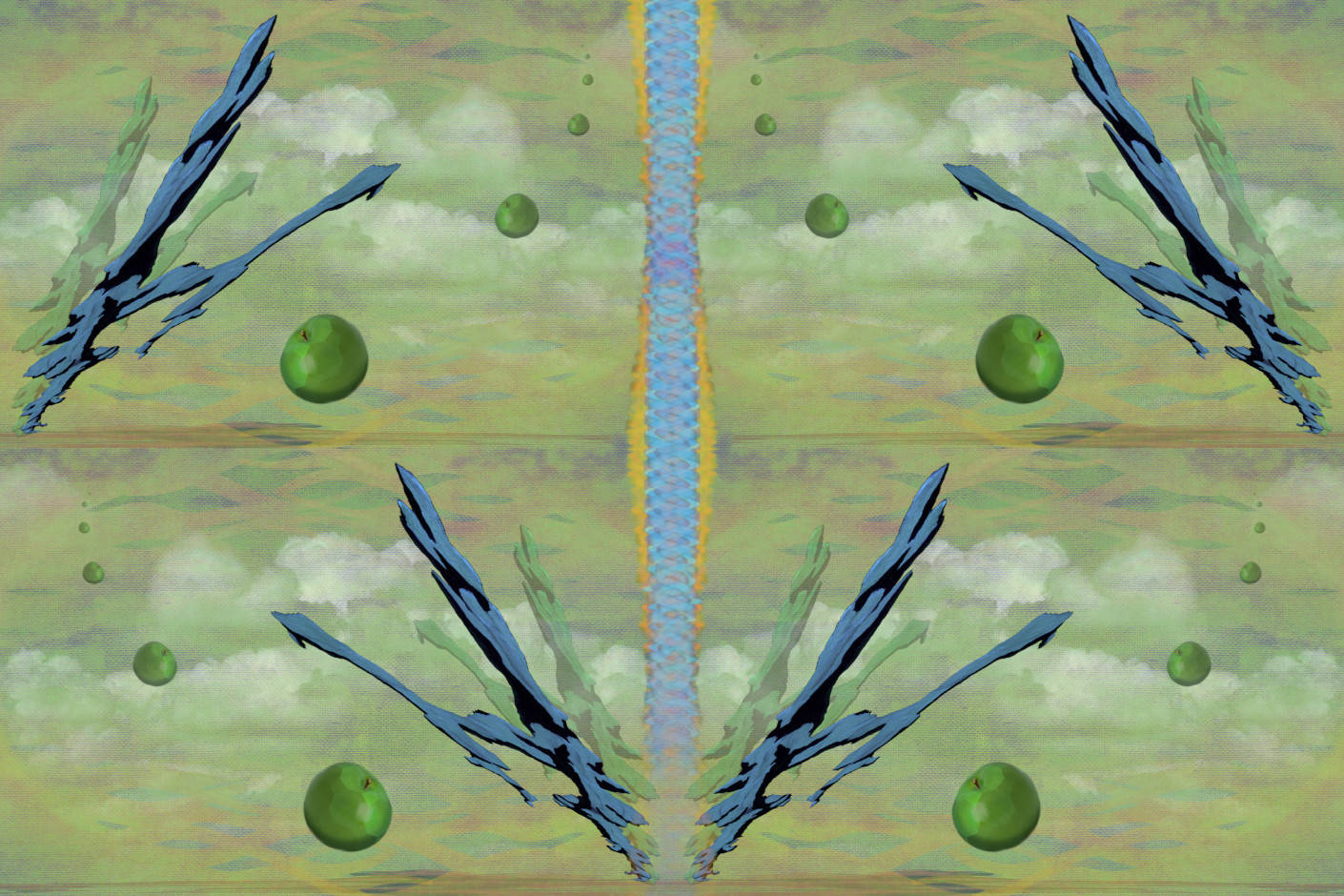 Leaping, spinning - Elaboration E5a Mar 2024 Digital collage / computer generated 254cm (100") x 169.5cm (66.5")