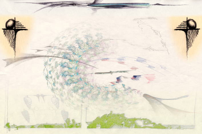 P459v1amod Shameless diversion No.? June 2024 Pen, pencil on paper / digital collage / computer generated 77cm (30.5") x 51cm (20")