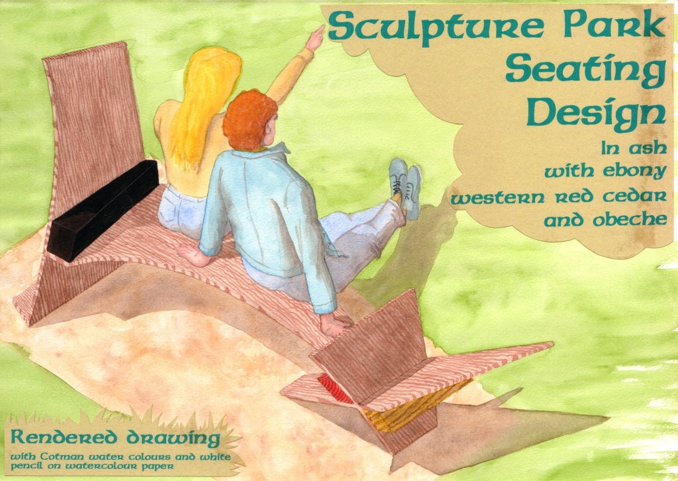 SP4 Sculpture Park seating design - ash, ebony, western red cedar and obeche 1995 Watercolours and pencil on paper 42cm (16.5") x 30cm (12")